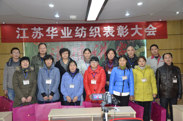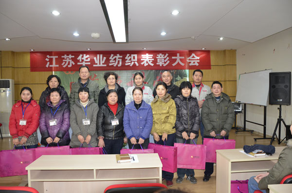 经过近二十年的创业,公司从一个仅有四台普通织机的家庭作坊,发展至今拥有百台以上先进织机规模型的纺织企业,离不开华业的全体员工,尤其是跟随并见证华业发展的老员工,为了激发员工的归宿感和荣誉感,经公司研究决定,对在华业公司工作满十年以上授予功勋员工称号。现按公司《功勋员工奖励办法》对满十年家人姚美芳、刘燕、沈卫、丁蓓蓓、阚志华、徐运、严钰婷、陈玉林和满十五年沐素芹、王丽、葛红芳、蔡爱芹、吴红梅、季跃付、宋玉飞、石秀兰等十六位员工进行慰问予以表彰。