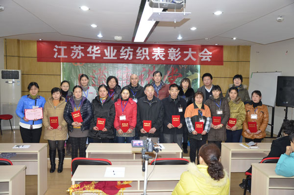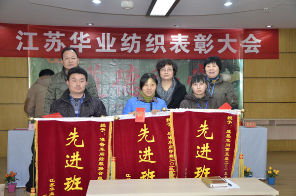 2013年在全体员工的精诚合作、不懈努力下,各项工作得到稳步发展,取得了一定成绩,为了增强全体员工的责任心和荣誉感,更好的做好2014年的工作,经推荐评审,决定授予:准备车间经浆联合机班组、织造车间甲班、成品车间第五组为2013年度“先进班组 ”;决定授予朱菊兰、王美、孙国涛、宋利玲、成 云(准备车间)、杨红芳、崔道兰、姜小娟、王志兰、朱春梅、成素芹、孙建梅、项凝、陈志红、张小芳、葛桂琴、陆秀荣、马吉兰、张金霞、葛霞、杨民友、钱霞、成云(成品车间)、丁应宏、丁蓓蓓、岳跃亭、周金燕、李玉兰 、王永、丁冬燕、张宏芳、施 毅、沙佩泉、葛 勇等34位员工为2013年度“先进员工”。