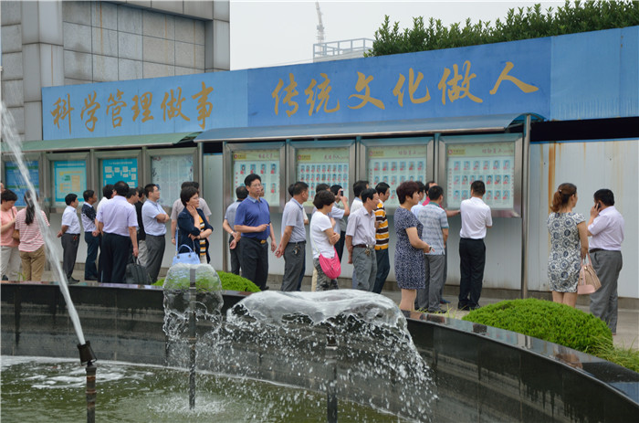 6月20日上午,常州市武进区前黄镇领导和企业家一行80多人到我司进行参观指导,此次来访的目的是,在新形势下传统行业如何能在竞争激烈的市场条件下保持不败或能生存,我司韩总介绍了公司自2003年以来投入大量资金一直坚持转型升级,技术及产品创新,文化振兴等生存与发展措施来面对市场、赢得客户;姚总着重介绍了自2011年引入优秀传统文化作为企业文化核心价值观,提升企业竞争的软实力;前黄镇裴书记也作了重要发言,“一是感谢阚董和张总给予这次参观的机会,二是分享参观体会、三是要求前黄镇企业在新形势下三点创新(技术、产品、思路)”;中午在华业员工食堂和华业员工一起诵读感恩词后就餐。