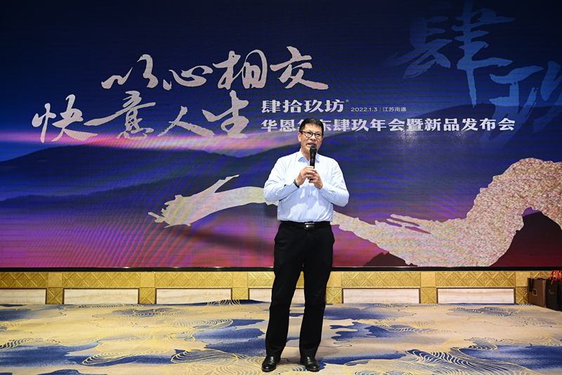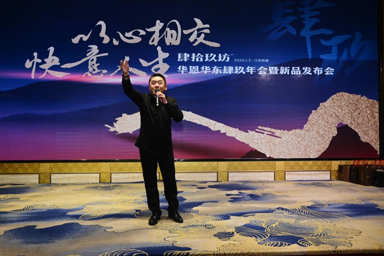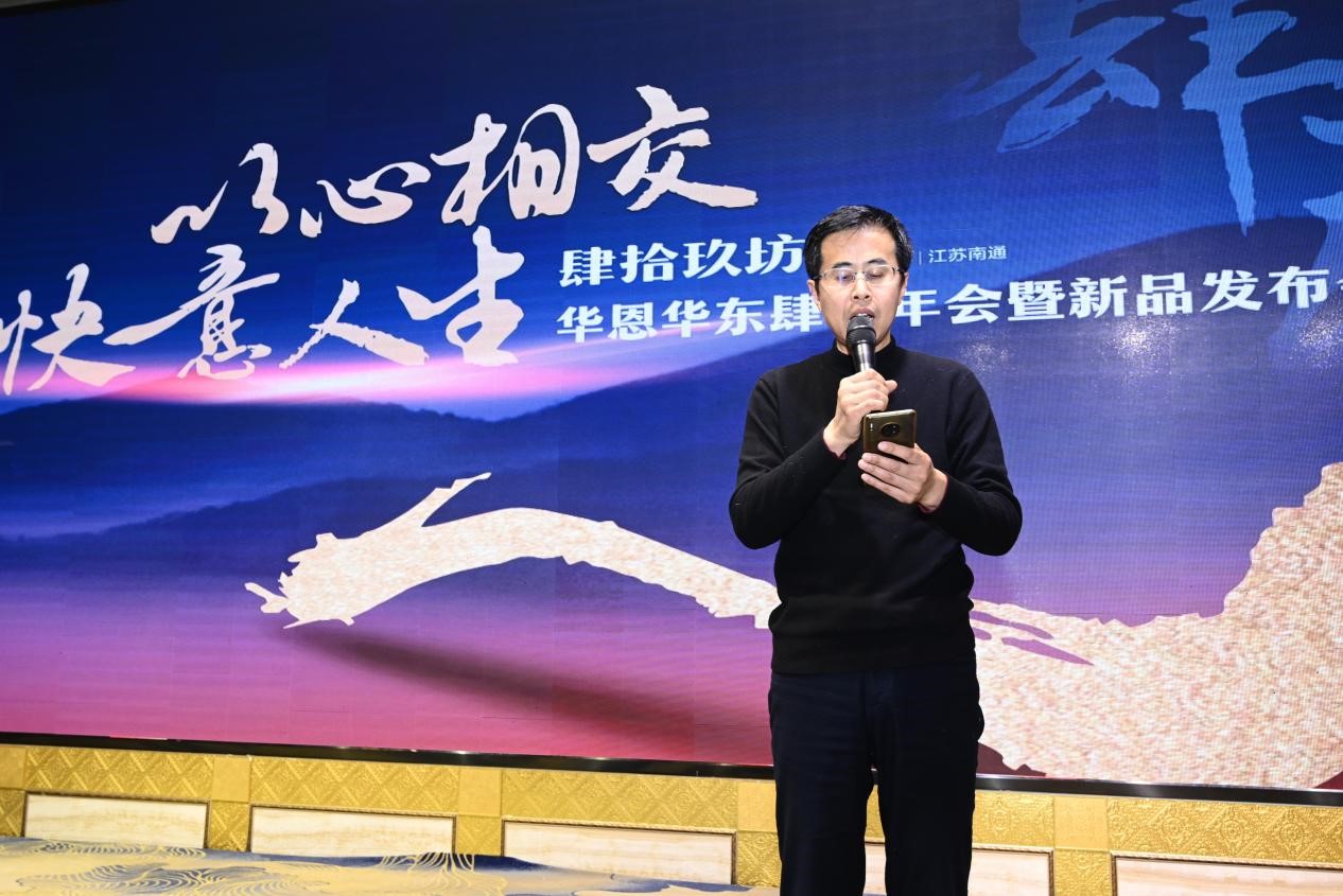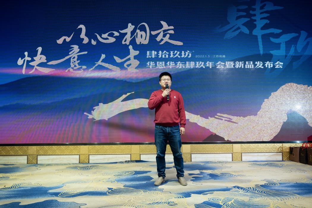 肆拾玖坊苏皖大区总监吴然先生致辞中表示,华恩华东肆玖在2021-2022财年1-2季度取得了傲人的业绩离不开广大经销商、合伙人以及南通各界朋友的支持,希望在2022年华恩华东肆玖百尺竿头更进一步。