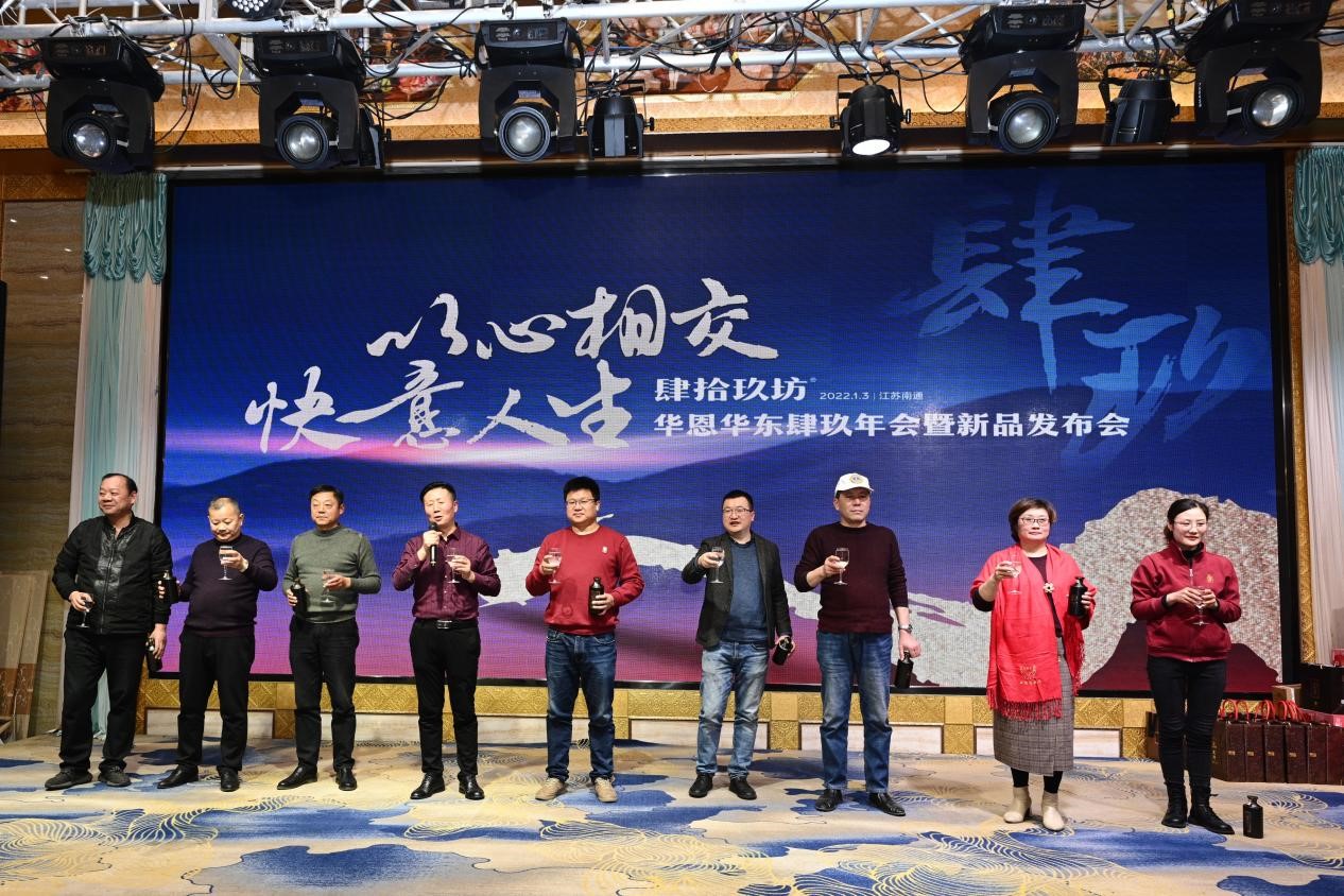 2022年1月3日下午,肆拾玖坊华恩华东年会暨新品发布会在南通花园大酒店胜利召开。肆拾玖坊苏皖联盟理事长、江苏华业纺织科技有限公司董事长阚进遂先生、肆拾玖坊苏皖大区总监吴然先生、肆拾玖坊苏皖联盟大区经理陈晔先生等出席了活动,经销商、合伙人以及各界嘉宾300余人参加活动。