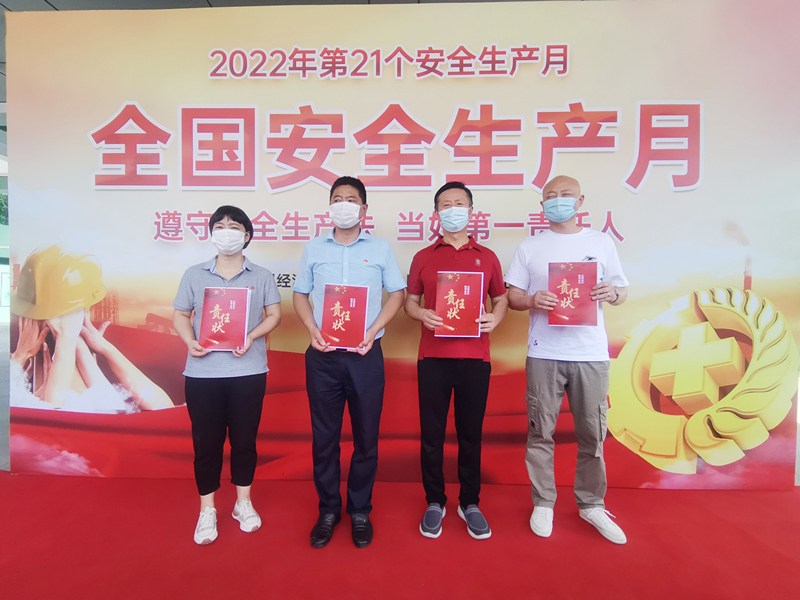 活动开始,首先各企业负责人认领企业安全第一责任人徽章,签署安全责任状,安全责任人结合生产和劳动安全知识、岗位作业标准等内容在各自企业内进行安全知识日常宣传监督,发放安全知识手册,鼓励企业员工培养遵章守纪,按标作业的习惯。